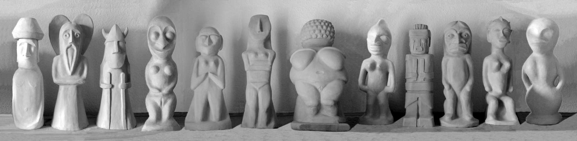 Seit langem verfolge ich das "spirituelle Erwachen der Naturvölker" (s. den Aufsatz: "Atlantis steigt wieder auf") mit angehaltenem Atem; Ausdruck davon sind nicht nur die "exotischen" Bestandteile meiner Musik, sondern genauso meine "magischen Figuren". - Meine Plastiken sind eine Weiterführung sowohl meiner Atlantisforschung als auch meiner musikalischen Arbeit mit anderen Mitteln; ebenso schließen sie nahtlos an meinen Instrumentenbau an: